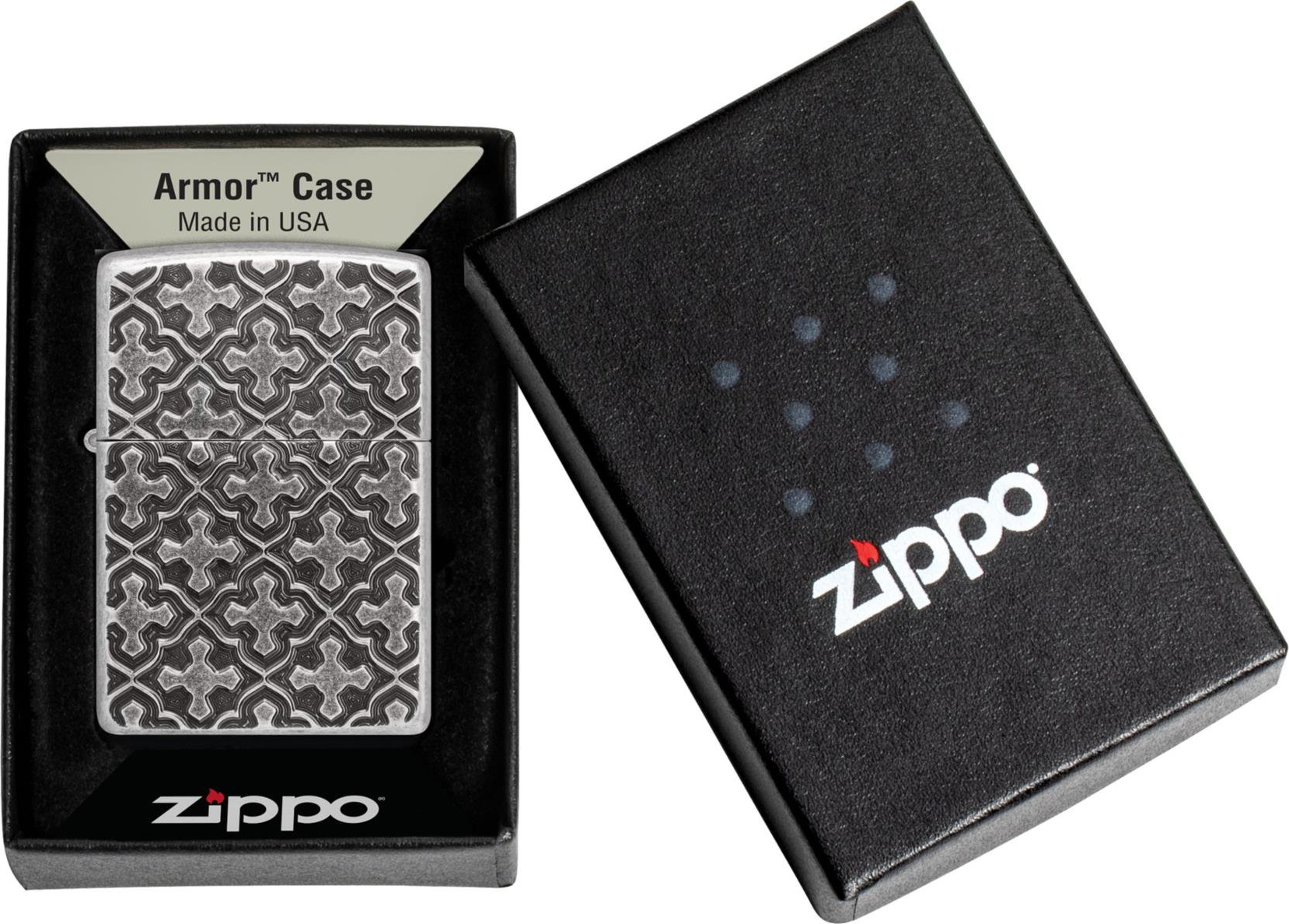 Weiterführende Links zu "Zippo Feuerzeug Armor Case Silber Antik Deep Carved Cross Pattern"