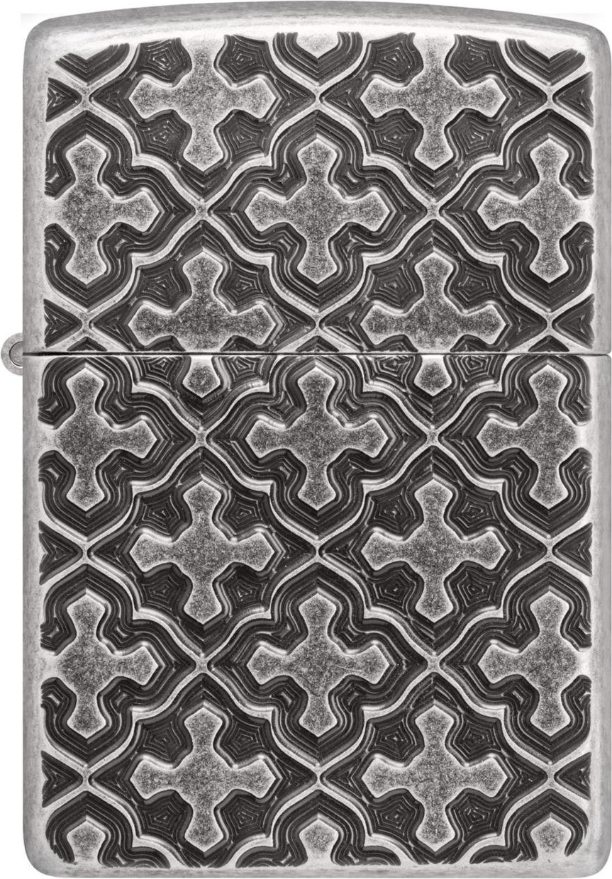 Produktinformationen "Zippo Feuerzeug Armor Case Silber Antik Deep Carved Cross Pattern"